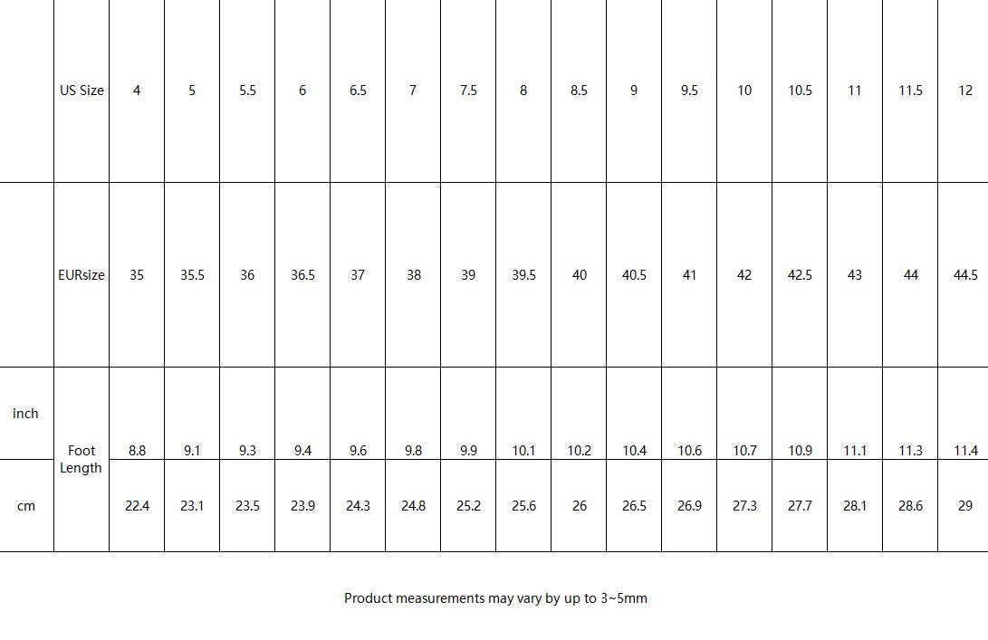 EUR Size US Size Insole Lengthinch Insole Lengthmm