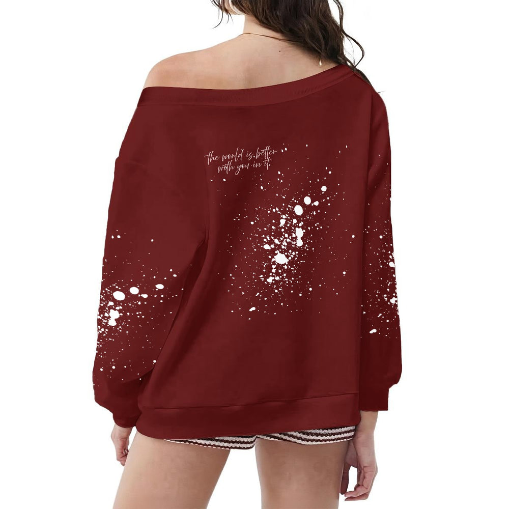 Off-Shoulder Sweatshirt w/Micro-Fleece Lining | (XS-6XL)Off-Shoulder Sweatshirt w/Micro-Fleece Lining | (XS-6XL)